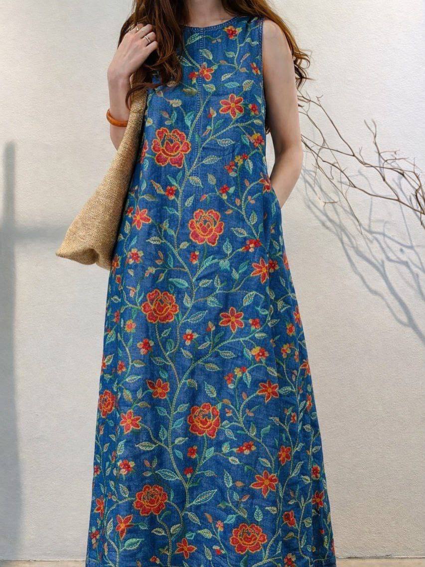 Джинсовая ткань с вышивкой, не эластична. Подходит для пошива платьев, юбок, рубашек, бомберов, а так же в декоративных целях.