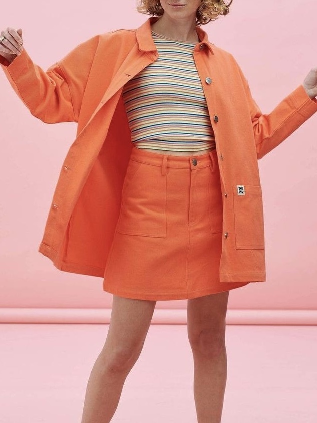 Джинс не высокой плотности. Он довольно прочный, немного эластичный. Подходит для пошива повседневной одежды: брюки, рубашки, тренчи, ветровки, жакеты, юбки, комбинезоны, сарафаны. Можно шить шоперы и бейсболки.